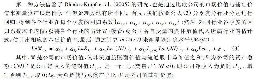先根据行业内所有公司推算出公司的基础价值, 进而通过对公司的实际价值与基础价值进行对比, 来衡量公司相对于业内同行的误定价水平。计算公式如下:
