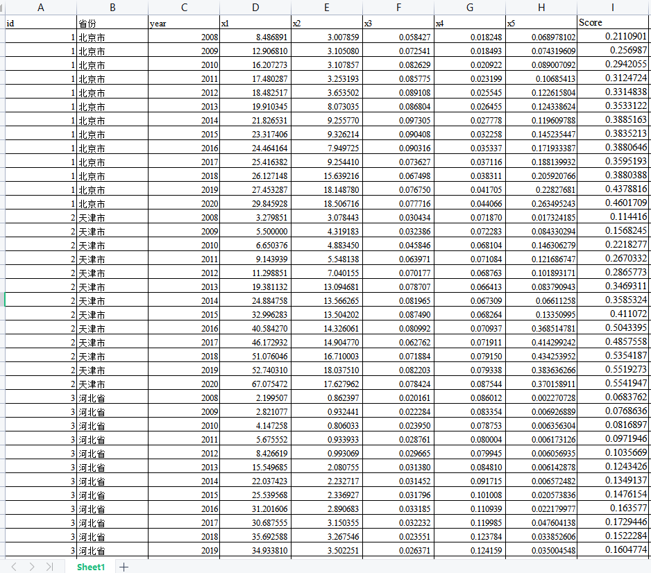 Score(综合得分):即为农村一二三产业融合综合指标