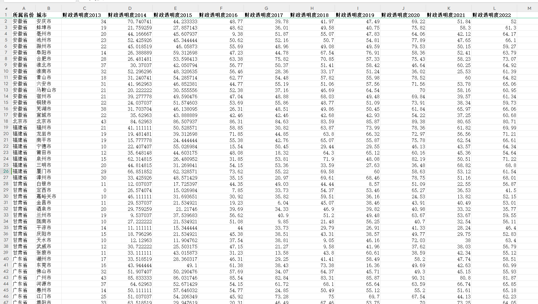 【数据】中国地级市、城市政府财政透明度数据2022-2013年