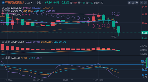 【原油消息面分析】:周三(11月13日)欧盘时段,原油期货价格小幅上涨,需求预估疲弱和供应不确定性仍令市场人气承压。石油输出国组织(OPEC)的月度报告为油价提供了支撑,该组织在报告中第四次下调了2025年全球石油需求前景。