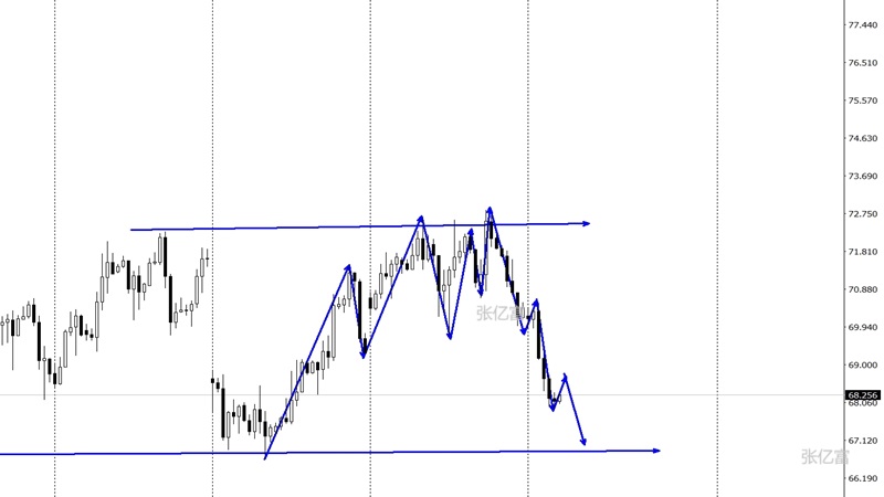 原油市场昨日开盘在68.02美元/桶,后行情直接拉升,日线最高触及到了68.95美元/桶,后行情快速回落,日线最低给到了66.97美元/桶,日线最终收线在了68.13美元/桶,后行情以一根下影线稍长于上影线的长脚十字星形态收线,而这样的形态收尾后,原油处于低位震荡中。四小时级别上看,原油的空头没变,不过价格也下行到下线了,后市能否进一步下破不确定,但是昨天收出十字,对于今天来看,以下线下方为防守,在上方继续尝试考验上方阻力位。综合以上分析,张亿富认为:原油探底回升后,考验上方阻力位,上方不破很难改变回落命运,今日操作上依旧考虑高空低多策略,上方关注68.7-69.6美元阻力,下方关注67.5-66.5美元支撑。