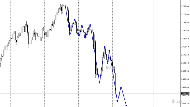 昨日黄金市场早盘开盘在2598.6美元/盎司,后行情先拉升,日线最高触及到了2619.3美元/盎司,后行情快速回落,日线最低给到了2572.8美元/盎司,日线以一根上影线很长的中阴线收线,而这样的形态收尾后,日线有效破位本轮上行趋势,今日黄金有延续下破的概率。4小时图级别,黄金在2716展开的二浪下跌,目前仍在延续较弱的下行台阶运行,次高点下移至2607。昨日横盘修正之后再破低,今日开盘在低位,短线看延续,以破低点2589做为反转阻力点,进一步看弱势延续。综合以上分析,张亿富认为:黄金空头持续发散,今日操作上考虑反弹做空为主,低多为辅,上方关注2585-2600美元阻力,下方关注2550-2540美元支撑。