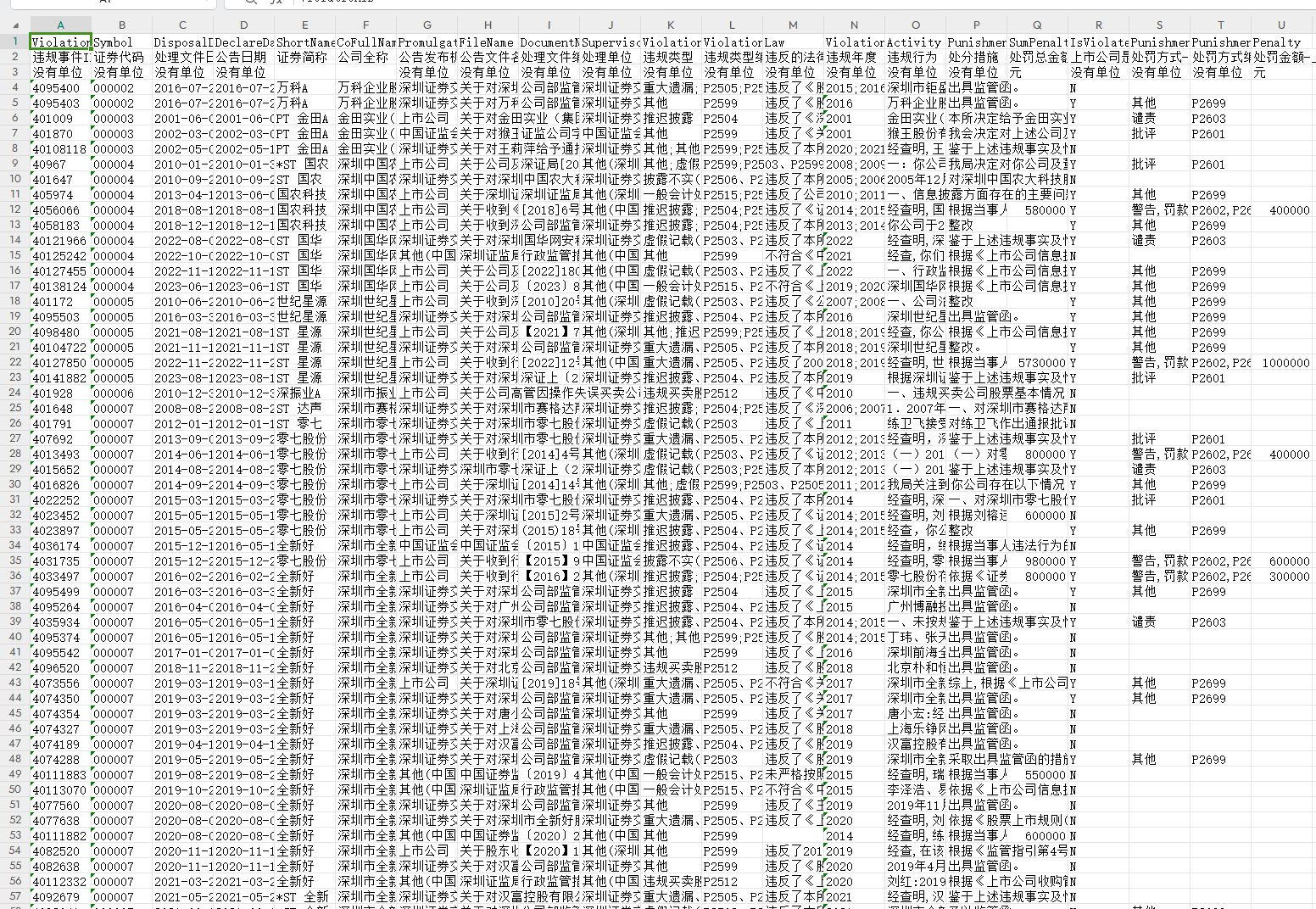 ViolationYear [违规年度] - 实际违规的年份,N/A代表未披露,与违规类型一样对应