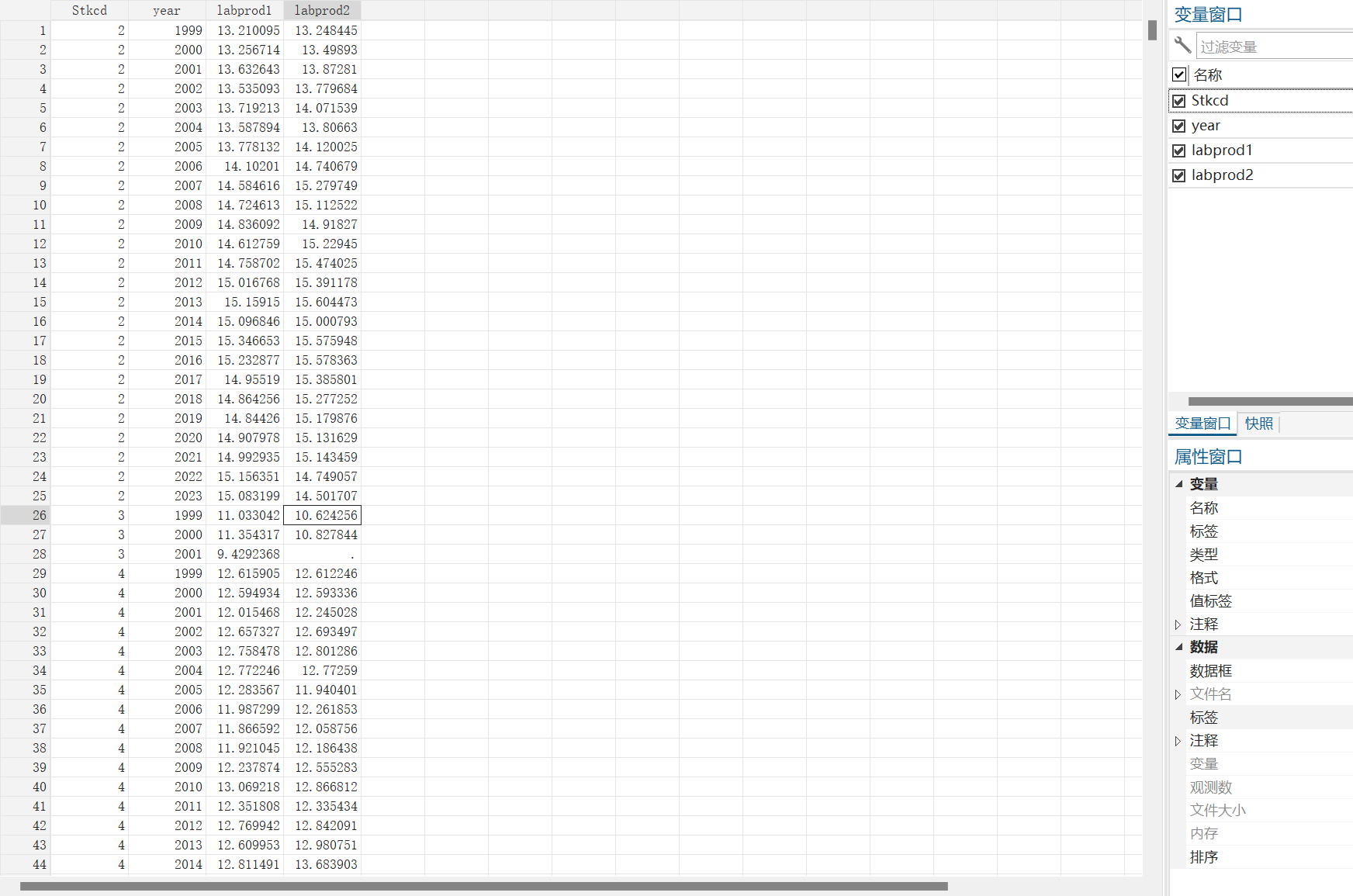 - ln_Labprod:人均营业收入的对数值,用于数据分析中的对数变换,以消除异方差性等问题。