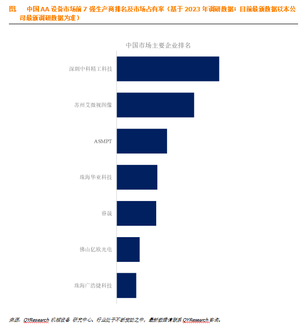 根据QYResearch头部企业研究中心调研,中国范围内AA设备生产商主要包括深圳中科精工科技、苏州艾微视图像、ASMPT、珠海华亚科技、睿晟等。2023年,中国前四大厂商占有大约57.0%的市场份额。