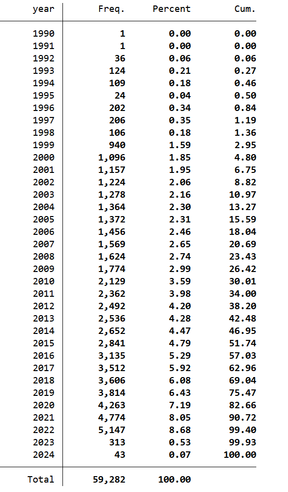 注意,受限于数据库披露的数据,截至发布时间,只有这么多的2023和2024数据