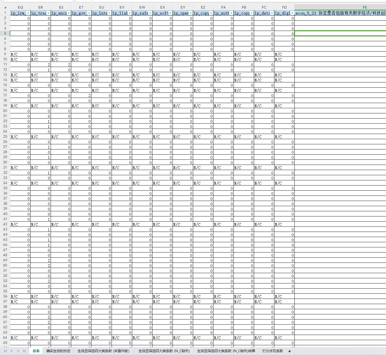 2.崔日明等(2024)的算法只简单理解:筛选出四大类相关的条款进行加总,形成4个子指标。具体筛选和计算在《总表+计算过程.xlsx》中,未标准化,未有其他处理。