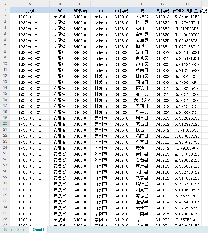 【数据】1980-2022年全国各省、市、县(区)PM2.5浓度面板数据