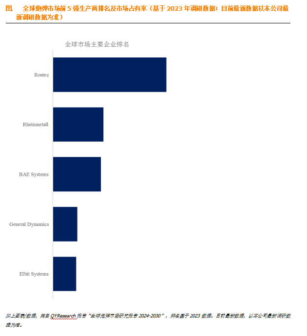 全球范围内炮弹生产商主要包括Rostec、Rheinmetall、BAE Systems、General Dynamics、Elbit Systems、Day & Zimmermann、NORINCO、Nexter、Nammo等。这些企业在炮弹行业具有重要地位,拥有先进的生产技术和研发能力。