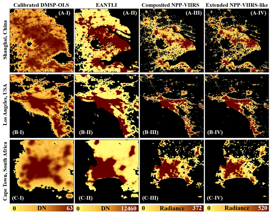 夜间灯光强度(平均灯光强度)的高低反映了一个地区城市化发展的水平,平均灯光强度越高,说明该地区城市群越多,城市化程度越高。夜间灯光数据现在越来越广泛地应用于经济增长分析、经济地理、城市经济学、数字经济等众多领域。