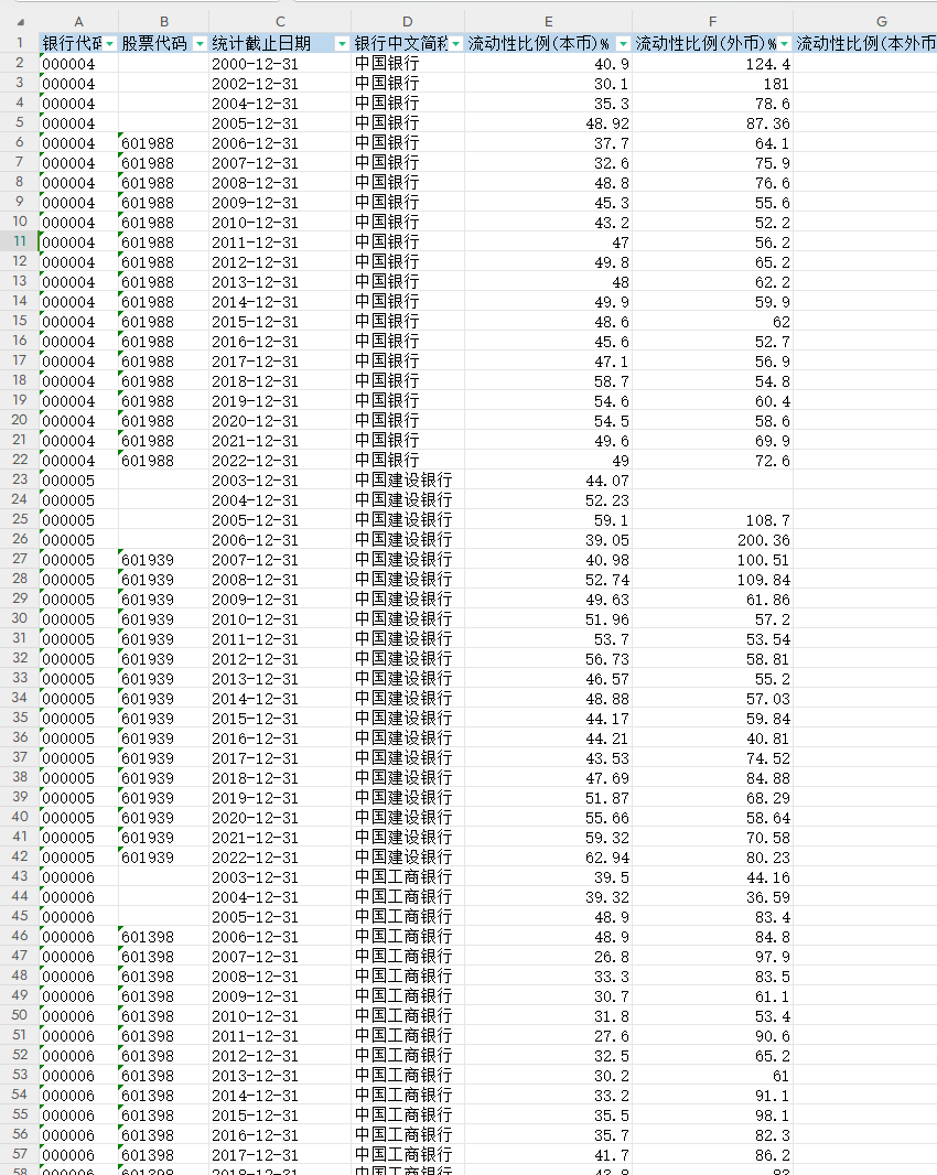 各银行流动性比例数据(2000-2022年)