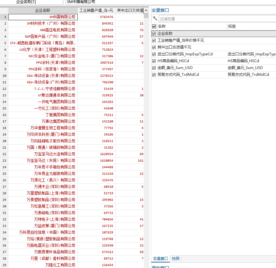 工业销售产值_当年价格千元、其中出口交货值千元、进出口分类代码_ImpExpTypeCd、HS商品编码_HSCd、金额_美元_Sum_USD、贸易方式代码_TrdMdCd