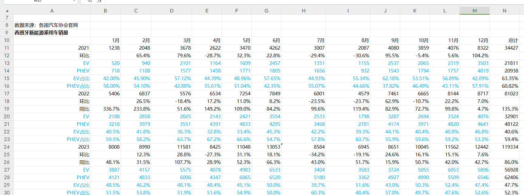 [经管数据集] 【数据】西班牙新能源汽车销量2021-2024.9 |