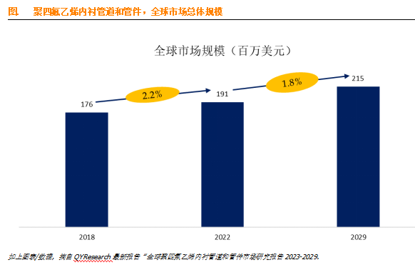 根据QYResearch调研团队的报告,预计2029年全球聚四氟乙烯内衬管件市场规模将达到2.2亿美元,未来几年年复合增长率CAGR为1.8%。这一增长主要得益于化工、石油、电力、冶金等行业的不断发展,对耐腐蚀管道的需求量日益增加。聚四氟乙烯内衬管道和管件以其优异的耐腐蚀性能和耐高温性能,逐渐成为这些行业不可或缺的管道材料,市场需求稳定增长。