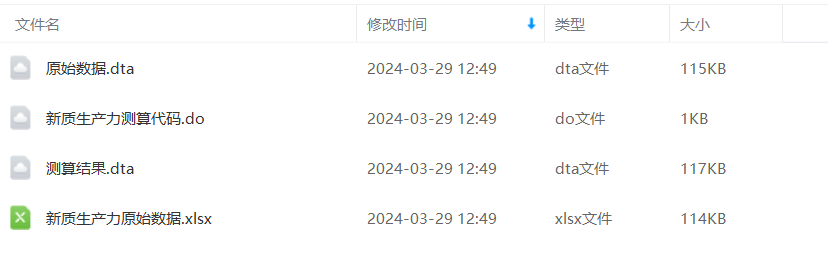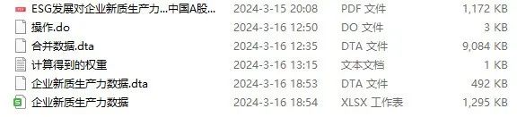 操作do文件,dta和excel结果,参考文献。 热门数据,现在几乎没有企业层面的文章,各大期刊选题指南均有新质生产力。