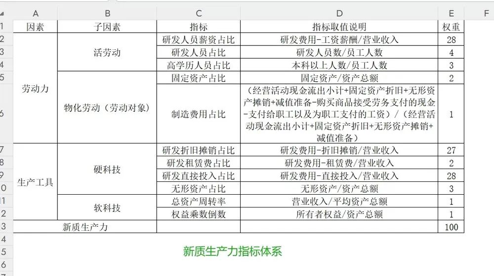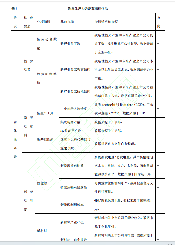 本数据展示了新质生产力指标体系,具体指标展示如下表: