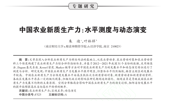 一、农业新质生产力(朱迪版)【文献+原始数据+结果】