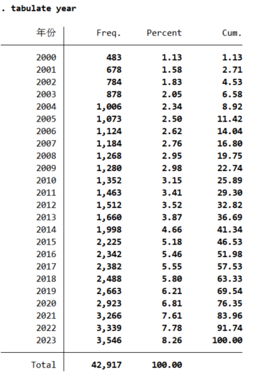针对2002至2023年的A股上市公司,我们按照以下步骤进行样本筛选: