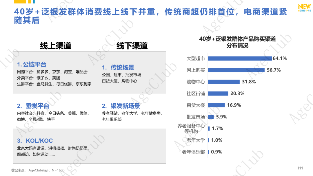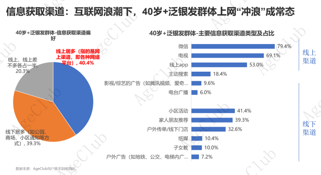 3. 40岁+泛银发群体的消费线上线下并重,各有优势