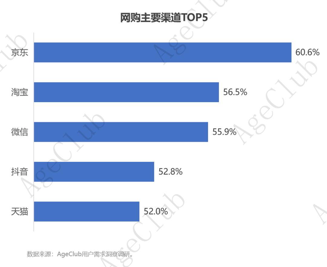 那么40岁+泛银发群体在线上、线下渠道消费时的行为模式、消费偏好有何异同?选择不同消费渠道的驱动力是什么?接下来我们围绕线上/线下各自的主要消费渠道详细展开分析。