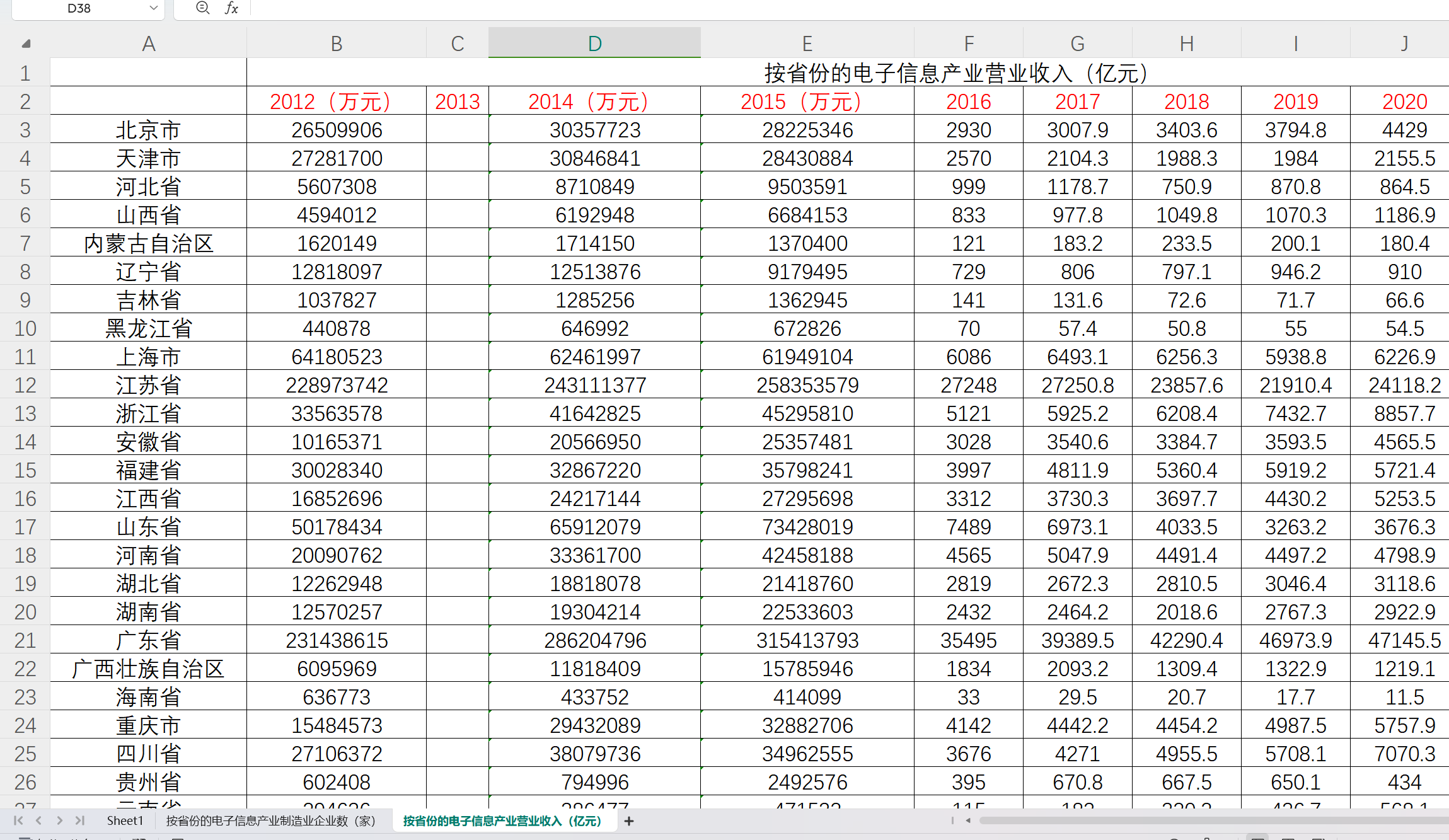 [经管数据集] 各省电子信息产业制造业企业数量和主营业务收入 2012-2022 |