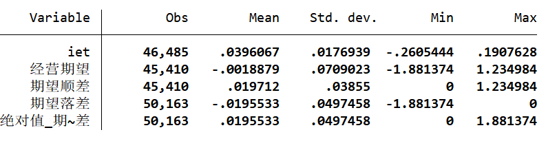 在此基础上, 本文构建了两个变量: 期望顺差和期望落差. 当企业经营期望大于 0 时,则期望顺差为实际差值, 期望落差计为 0; 同时, 当企业经营期望小于 0 时, 则期望顺差计为0, 期望落差计为实际差值的绝对值, 得到截尾处理的变量.