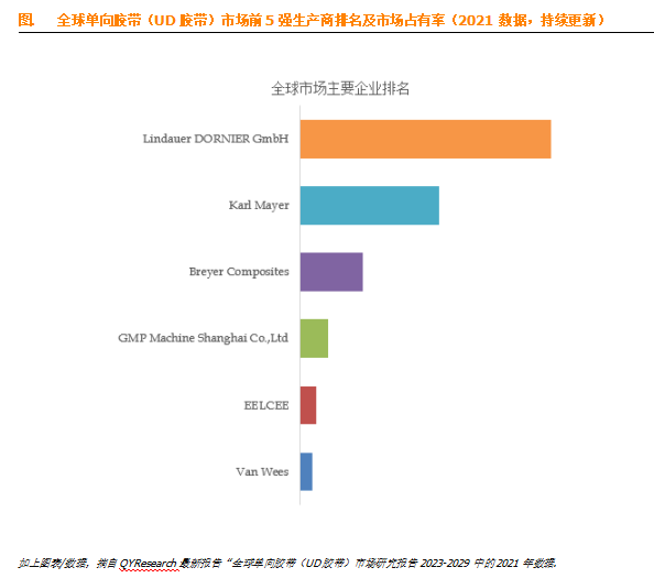 全球范围内单向胶带(UD胶带)生产商主要包括Lindauer DORNIER GmbH、Karl Mayer、Breyer Composites、GMP Machine Shanghai Co., Ltd、EELCEE、Van Wees等。这些企业在市场中的地位和战略定位各不相同,但都具有一定的竞争优势和劣势。