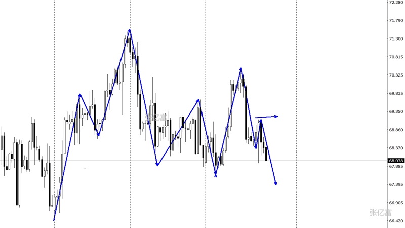 原油市场昨日开盘在68.78美元/桶,后行情先震荡拉升给出69.15美元/桶,后行情快速回落,日线最低给到了68.03美元/桶,后行情强势拉升,日线最高触及到了69.21美元/桶,后行情尾盘回落,日线最终收线在了68.5美元/桶,后行情以一根纺锤形态收线,而这样的形态收尾后,原油持续承压状态。四小时级别上看,油价处于震荡向下形态中,布林带开口向下,油价运行在中下轨徘徊,油价在反弹遇阻于69.1一带后,油价小震荡区间再次下破新低,进一步表明油价,将运行在新价位区间中,今日延续看跌情绪较大。综合以上分析,张亿富认为:油价冲高遇阻,空头持续发力,今日操作上考虑反弹做空为先,低多为辅,上方关注68.6-69.2美元阻力,下方关注67.0-66.5美元支撑。