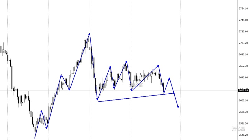 黄金市场昨日区间回落,早盘开盘在2649.9美元/盎司,后行情先回落给出2444.5美元/盎司,后行情拉伸,日线最高触及到了2655.7美元/盎司,后行情震荡整理,美盘时段行情快速下行,日线最低给到了2623.2美元/盎司,日线最终收线在了2632美元/盎司,后日线以一根下影线稍长于上影线的中阴线收线,黄金延续承压中。4小时图从上轨处承压摔至下轨,是本周一直给出在上轨做空看下轨的基本判断,震荡行情,布林道收缩状态就是最好的操作区间,上轨空看下轨。目前布林道有轻微张口迹象,向下发散迹象。综合以上分析,张亿富认为:黄金区间下破,有望出现空头持续,今日操作上考虑反弹做空为主,低多为辅上方关注2630-2645美元阻力,下方关注2600-2590美元支撑。