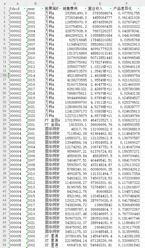 上市公司产品差异度2000-2023年