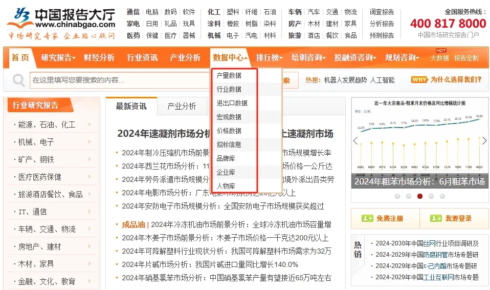 中国报告大厅是一个市场研究报告和统计数据平台,数据内容涵盖了互联网、移动、增值服务、电脑、软件、数码、游戏、医药、保键、建筑、化工、农业、机电、家电、纺织、能源等30多个大行业。