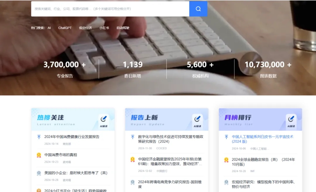全面覆盖各投资领域,依托海量的宏观策略、行业发展、上市公司等研究报告,采用智能搜索引擎、专业OCR识别、文档结构化解析、自然语言处理等技术,致力于为金融投资人员、企业高管、咨询顾问、行业研究员、市场分析师、市场运营人员等提供便捷、全面的实时、专业的信息检索服务。