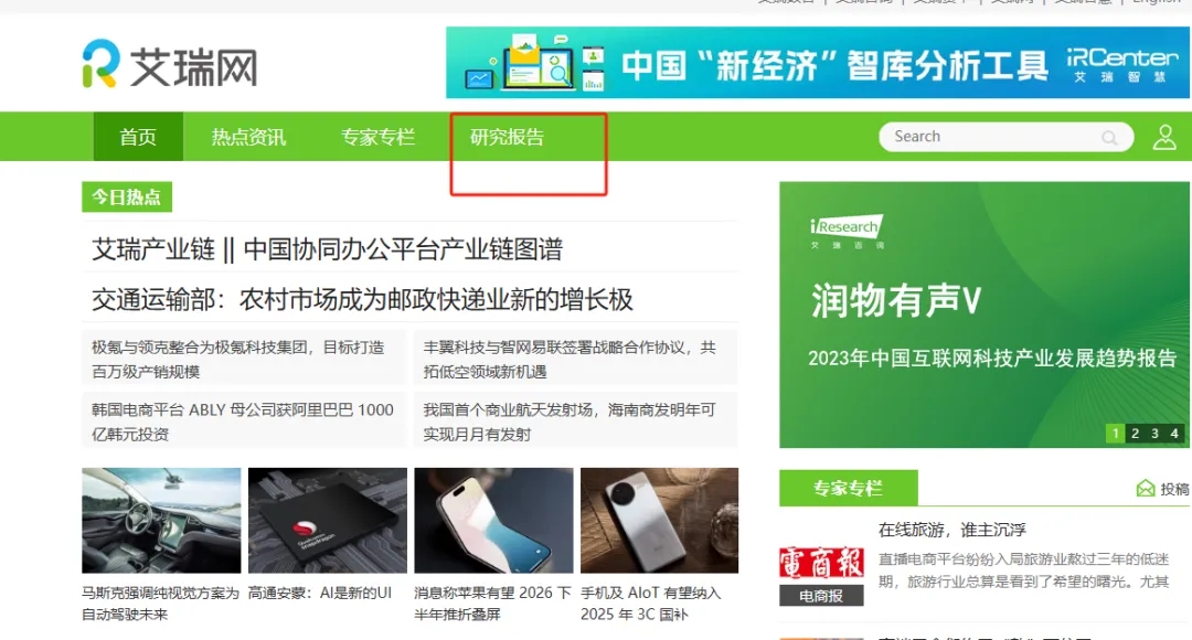 在艾瑞网中,可以看到专业的数据分析报告,从这些报告中可以学习其分析思路和规范报告的撰写方法。在这个网站,可以看到不同行业的不同数据数据报告。