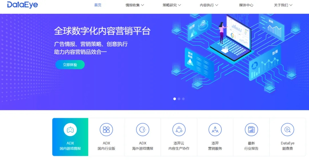 DataEye还提供最新的行业报告,为3000+客户制定品牌战略、内容营销、市场研究、用户调研、竞对分析等研究报告。此外,DataEye基于对营销数据11年的深度垂直与挖掘,覆盖80%以上行业广告情报数据。