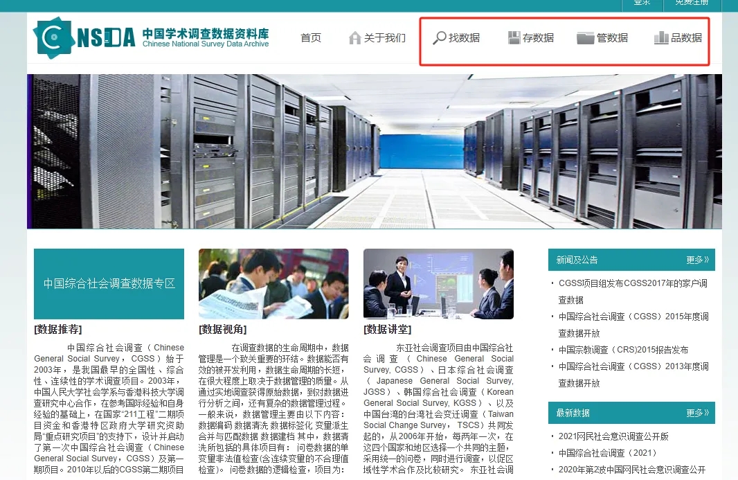 中国人民大学中国调查与数据中心创建的经济与社会数据共享平台。数据内容主要为社会调查类数据,做社会调查课题的小伙伴可以关注