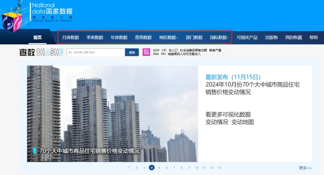 国家统计局的数据网站,按年度、季度、月度统计了我国社会经济数据。数据层级偏宏观,适用于大尺度的数据分析。