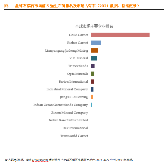 全球范围内石榴石生产商众多,其中GMA Garnet、Rizhao Garnet、Lianyungang Jinhong Mining、V.V. Mineral、Trimex Sands、Opta Minerals等企业占据较大的市场份额。这些企业主要通过以下战略定位来保持竞争优势: