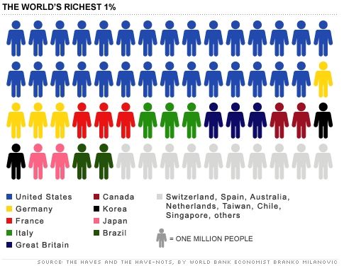 那么这些幸运的富人们都来自哪里?自2005年以来有效的统计数据显示,大约一半,约2900万名富人来自美国。(数据来源于布兰克•米兰诺维奇(Branko Milanoivc)著作《有产者与无产者》(The Haves and the Have-Notes))。