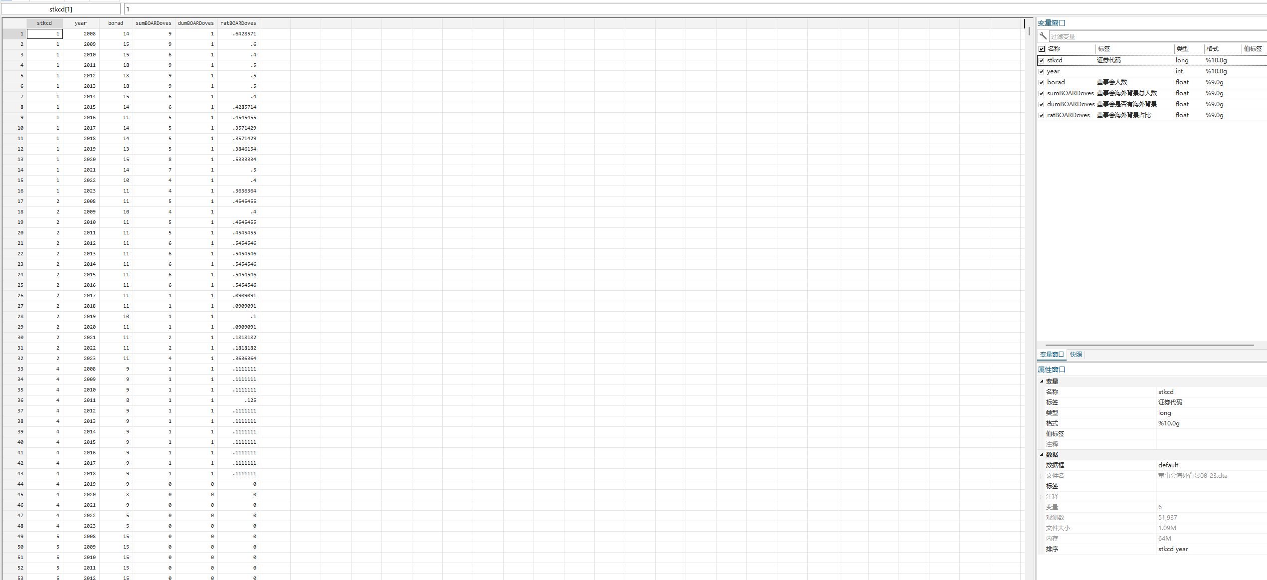[经管数据集] 【2023】董事会 海外背景 2008年-2023年 |