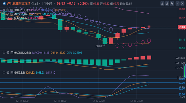 【原油消息面分析】:12月17日周二盘中,原油价格进一步下跌,WTI原油已跌破70美元关口。此前消息称,墨西哥国有石油生产商Pemex已在墨西哥湾地区的所有平台全面恢复运营。这一消息与年度飓风季节结束及天气状况改善有关,意味着更多供应即将重返市场。