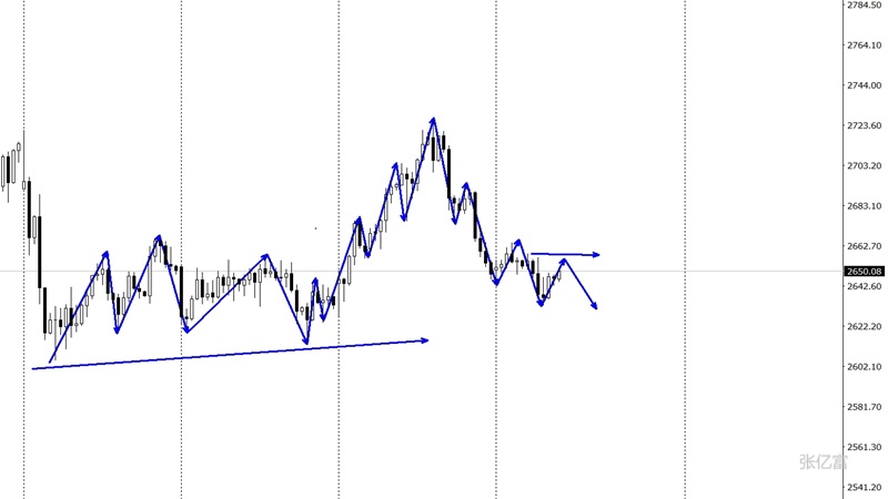 黄金周二出现了先跌后反弹,在2659一带承压下跌,下破新低触及2632美元之后金价出现了反弹,最后收盘在2646美元一带徘徊。日线级别收录一根阴线锤头线,带有较长下影线,进一步表明下方有支撑,但是高点没有突破前高,依旧处于承压转态。四小时级别上看,布林带处于一个走平状态,黄金在2726一带遇阻之后出现了一个震荡三连跌,很明显,最后一波回落没有达到预期,出现了反弹,间接的表明了空头动能出现了削弱,如果向上出现突破,将表明新一轮的趋势来袭。在此之前依旧考虑阻力位是否有效。综合以上分析,张亿富总结:黄金处于承压状态,在下破新低后运行在一个震荡区间,今日操作上考虑反弹做空为主,低多为辅,上方关注2657-2665美元阻力,下方关注2632-2623美元支撑。