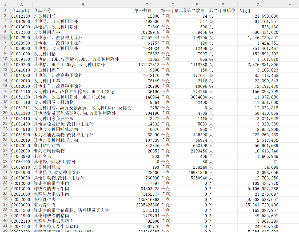 ②2018-2023年中国海关按贸易商品分类的数据