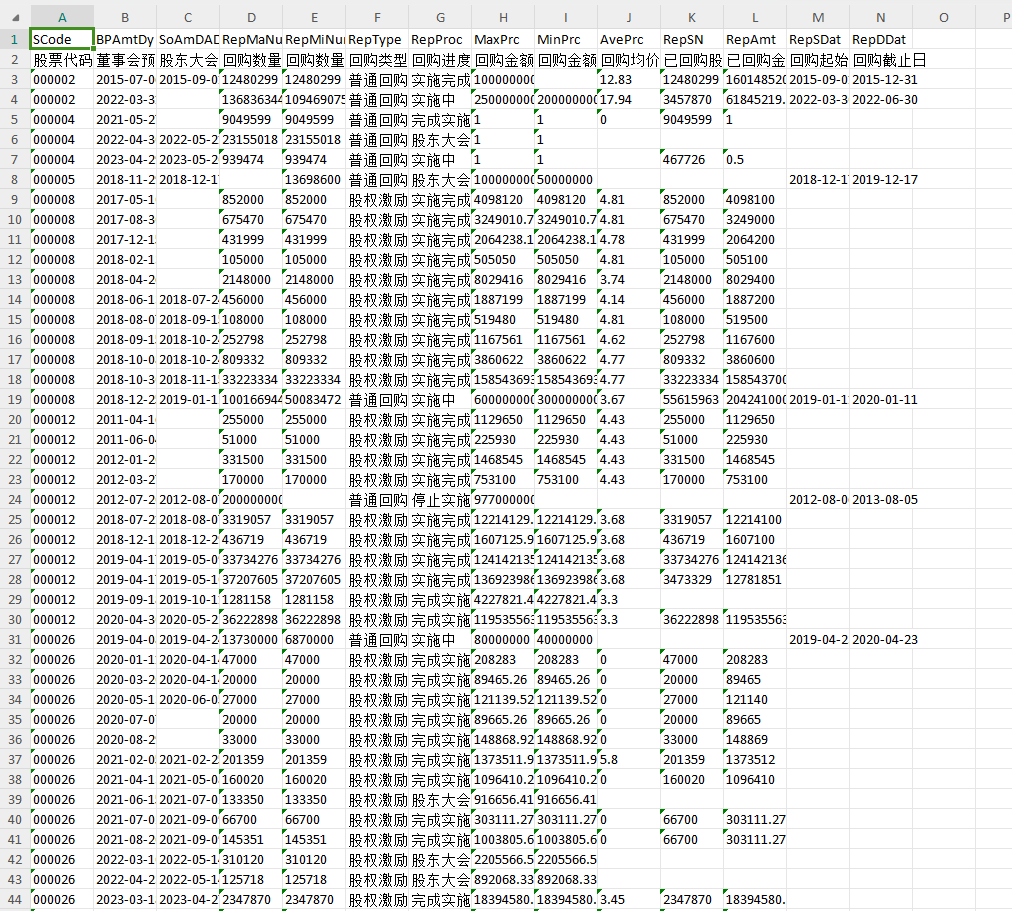 RepProc[回购进度]-股份回购的进度