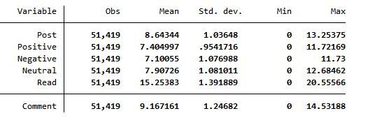 Comment:上市公司当年度东方财富网股吧被跟帖评论次数之和加1并取自然对数