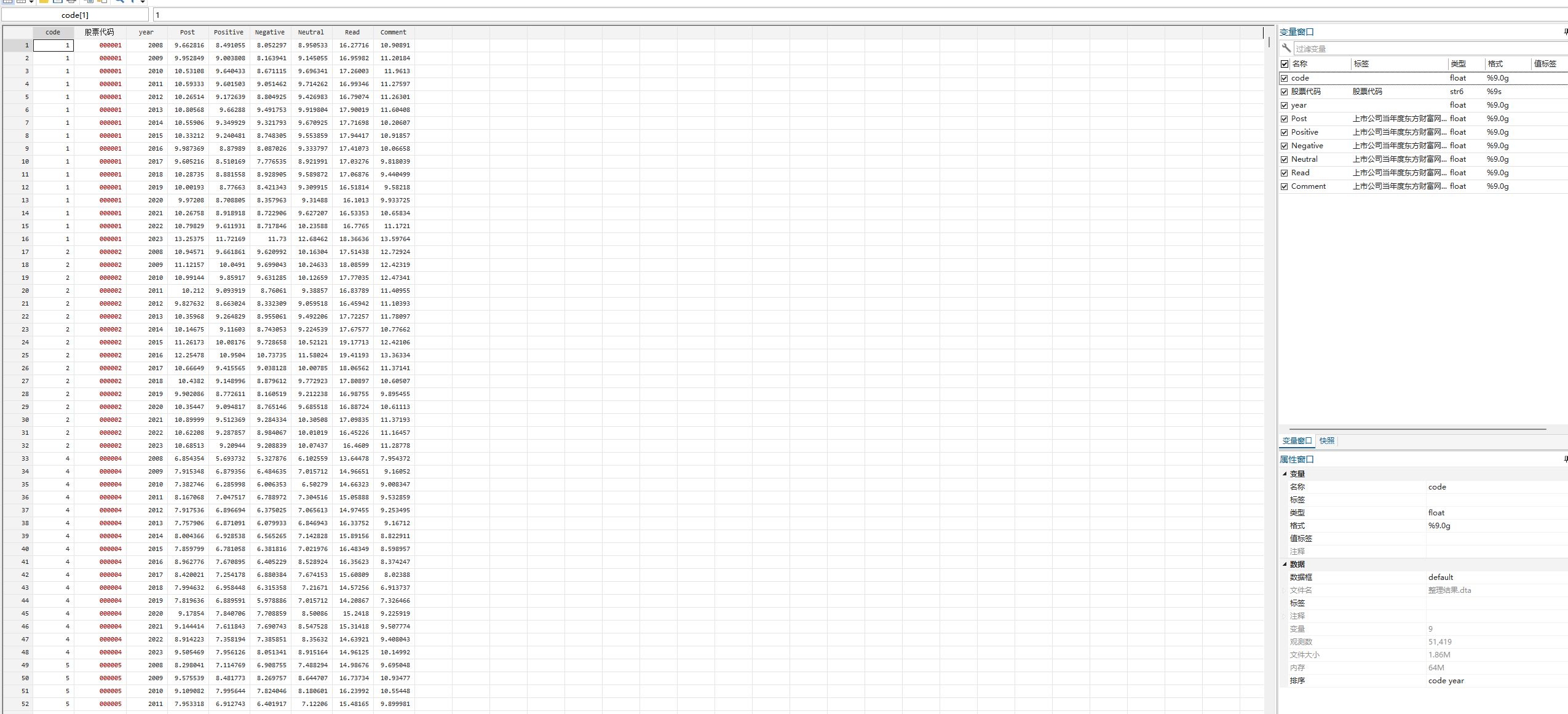 Positive:上市公司当年度东方财富网股吧正面帖子数量之和加1并取自然对数