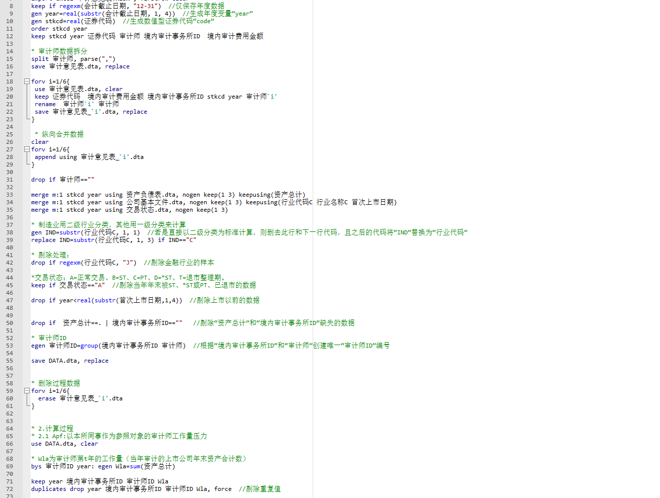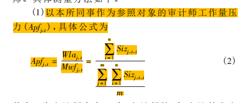 (1)以本所同事作为参照对象的审计师工作量压力(Apf),具体公式为