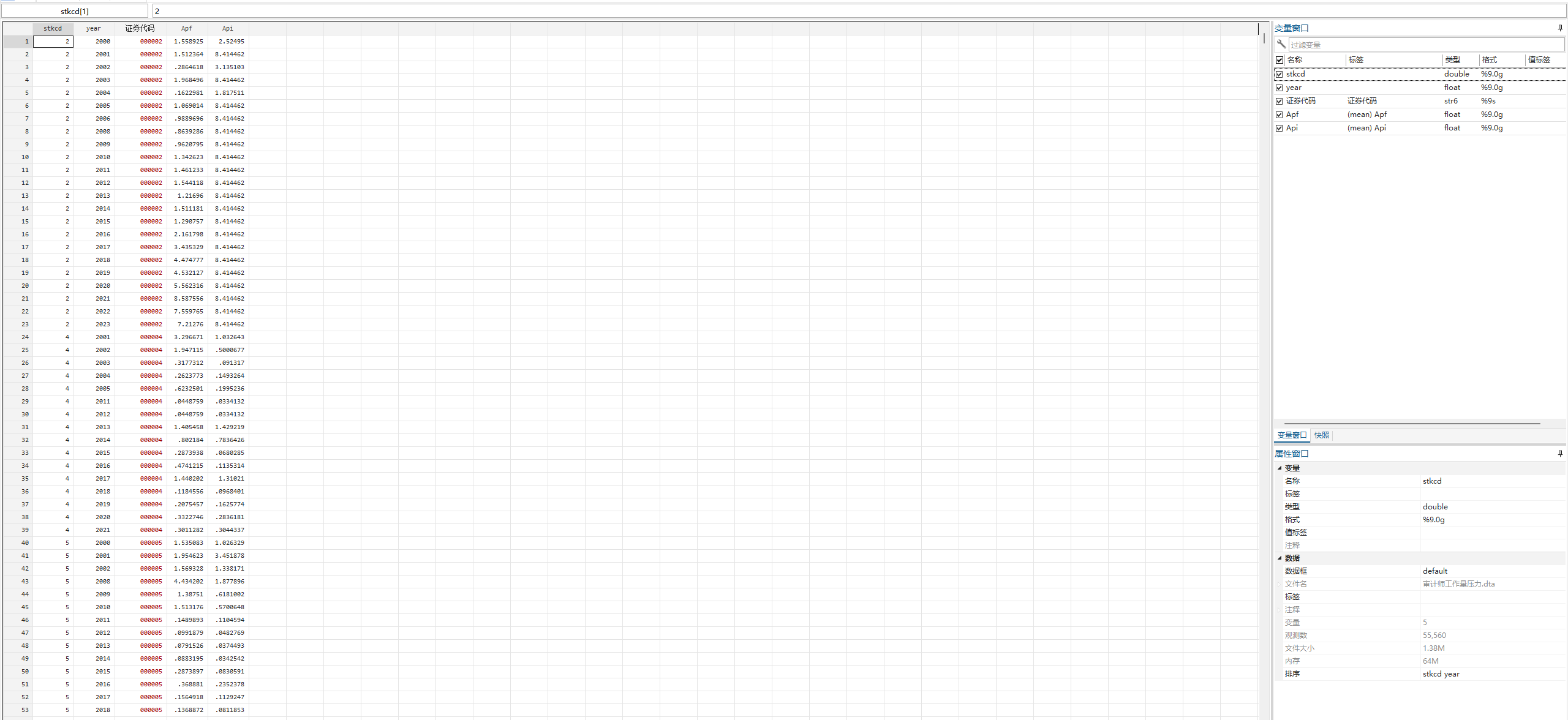 Apf数值越大表示j审计师比本所同事负载的超额工作量越大,工作量压力越大。此外,鉴于中国上市公司年报通常由两位审计师签字,本研究主测试部分采用两位签字审计师的工作量压力的均值作为i公司第t年的签字审计师工作量压力的数据。