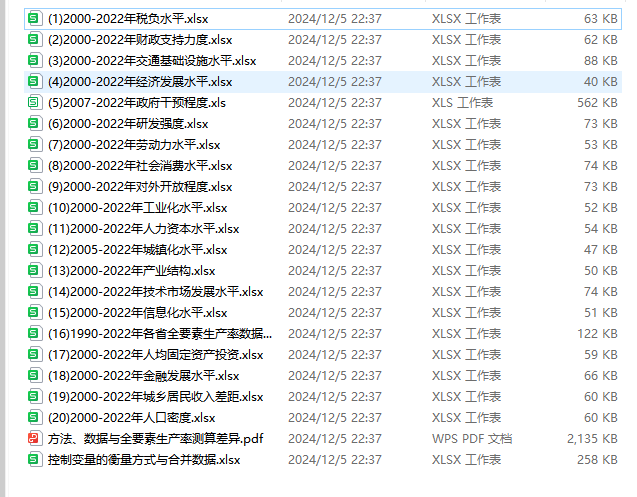 (16)1990-2022年 各省全要素生产率数据 参考文献:方法、数据与全要素生产率测算差异