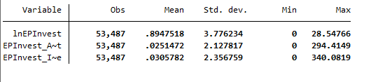 具体指标为EPInvest(环保投资)、lnEPInvest(环保投资金额对数)、 EPInvest_Asset(环保投资金额除以总资产)、EPInvest_Income(环保投资金额除以总收入)