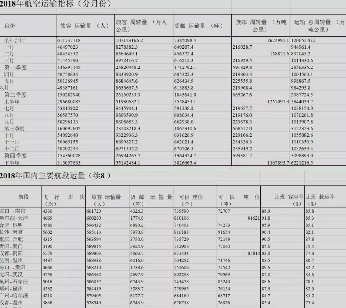 “航空运输发展指标”收录全行业及航空公司、机场的运输指标;